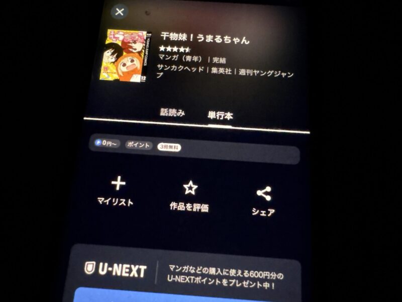 動画配信サービスであるU-NEXTでは、アニメが見放題なだけでなく無料トライアルでもらえる600ポイントを利用して最新刊を無料で読むことができます。