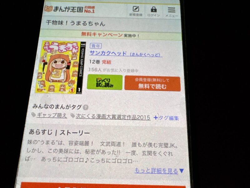 干物妹!うまるちゃんはまるごと無料では読めませんが、試し読みはできます。