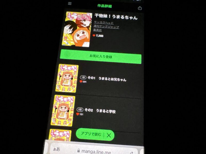 ここからは、干物妹!うまるちゃんの漫画が無料で読めるアプリを紹介します。
