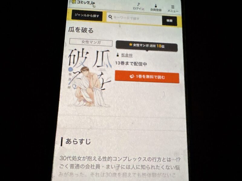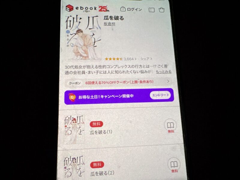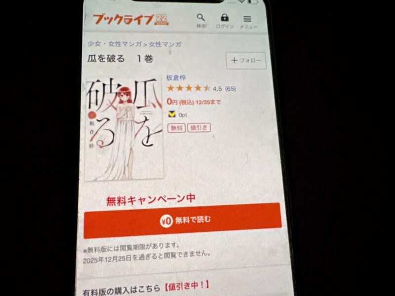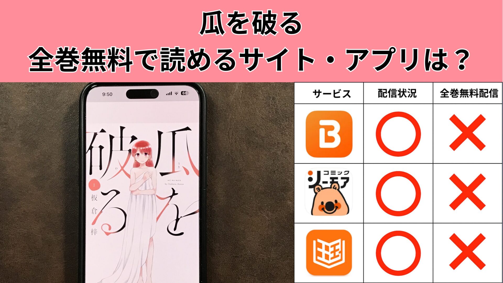 瓜を破るはまるごと無料では読めませんが、キャンペーンで1〜2巻が無料で読め、試し読みもできます。