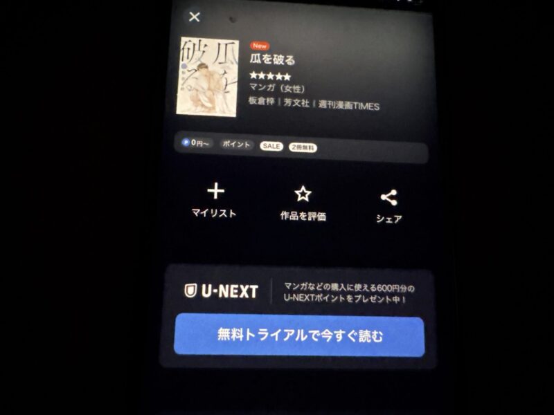 31日間の無料トライアルがあるU-NEXTですが、最新刊も無料で読めます。