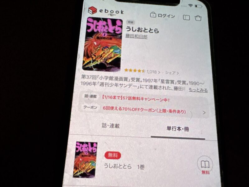キャンペーンを利用すると、うしおととらを割安にまとめて購入したり、1巻だけ無料で購入することが可能です。