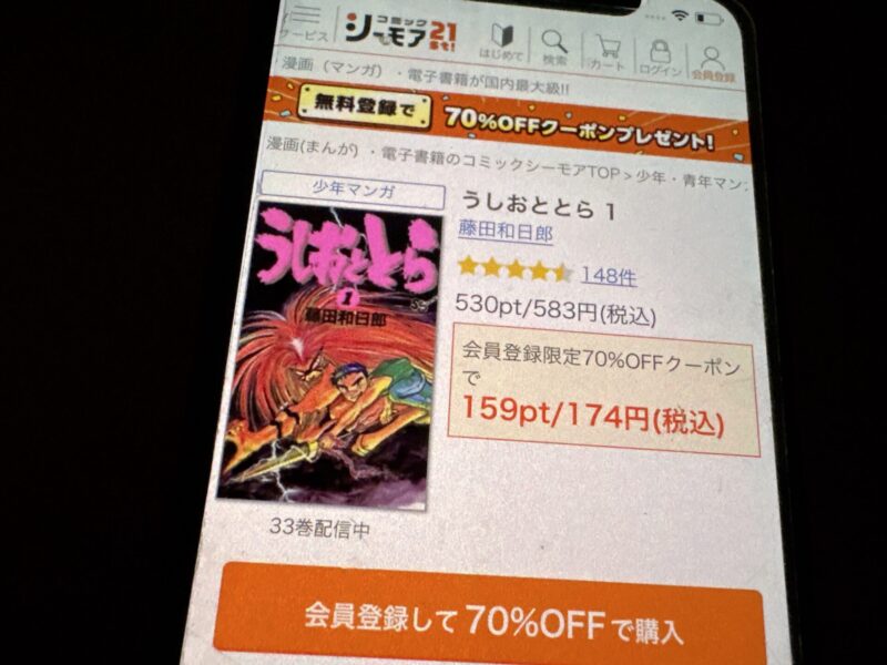 また、ブックライブは会員登録するだけで1冊限定の70%オフクーポンがもらえます。