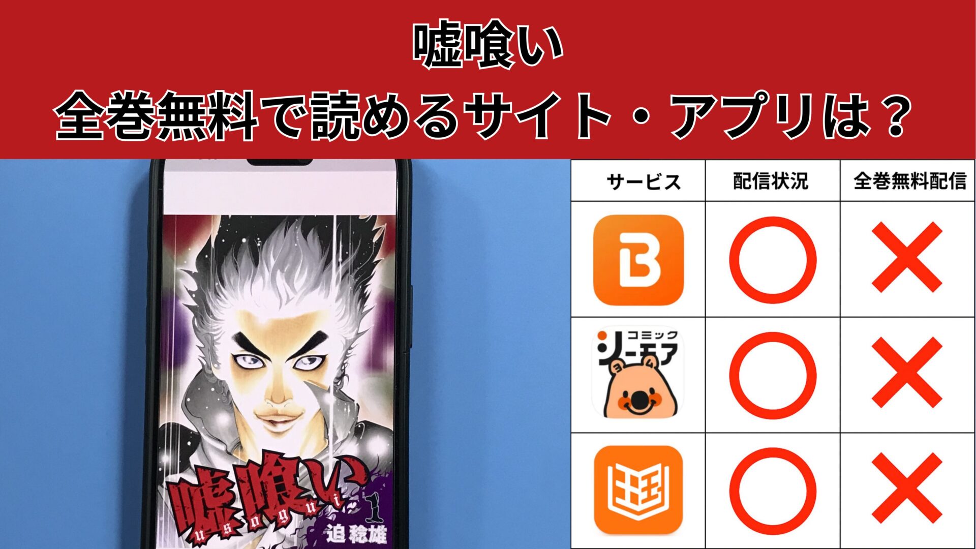 この記事では、最新の嘘喰い無料キャンペーンや電子書籍の割引情報などの最新情報を発信しています。