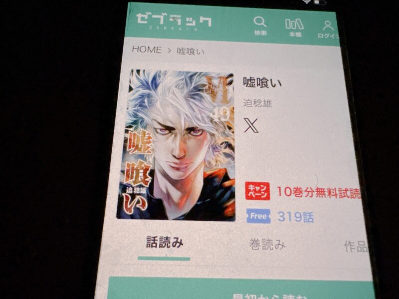 嘘喰いの漫画が無料で読める電子書籍サービス