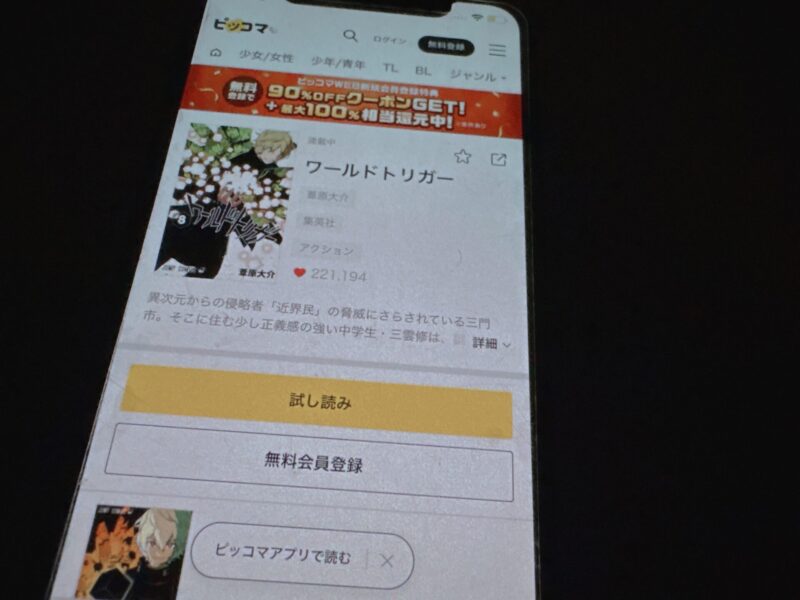 ワールドトリガーはまるごと無料では読めませんが、試し読みはできます。