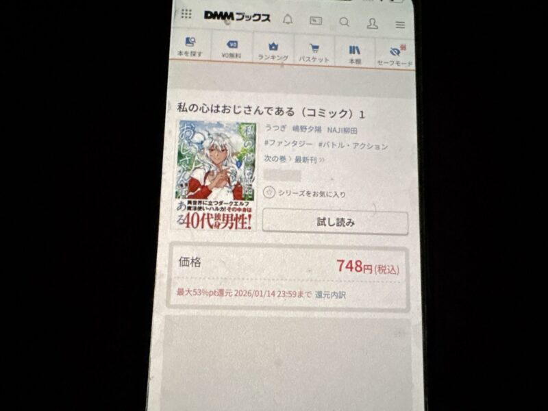 なお、私の心はおじさんである全巻をできるだけ安く購入するには、2巻分を購入し、残りの巻を還元ポイントで購入する必要があります。