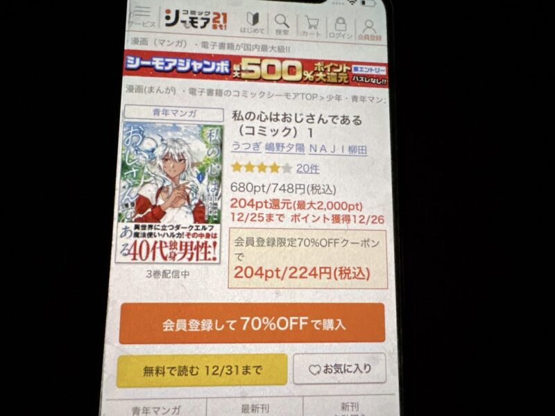 キャンペーンを利用することで一部の巻は無料で読めるため、お得に私の心はおじさんである漫画を全巻読むためには利用しましょう。