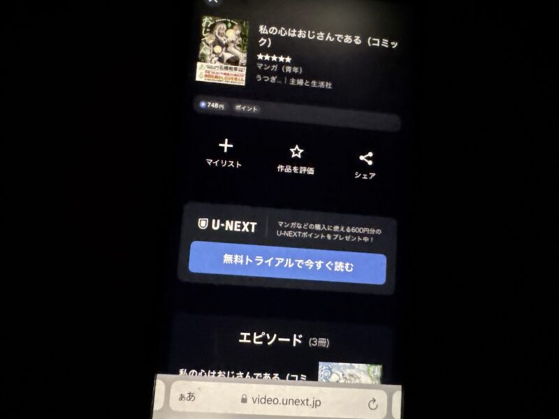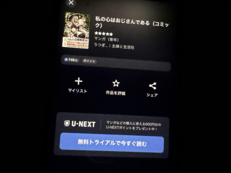 無料トライアルに登録すると600円分のポイントがもらえるので、私の心はおじさんであるの単行本を一冊無料で購入可能です。