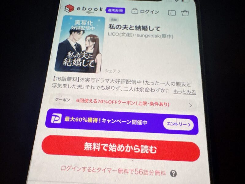 現在「私の夫と結婚して」の取り扱いはありませんが、クーポンを利用すれば他の気になる漫画もお得に購入できます。