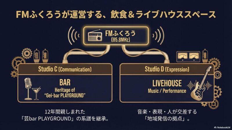 FMふくろうが運営する飲食&LIVEHOUSEスペース