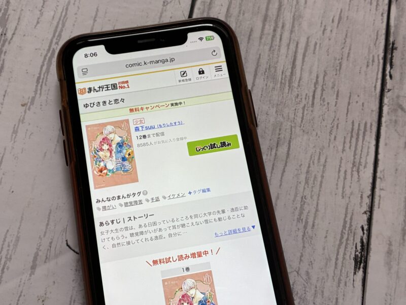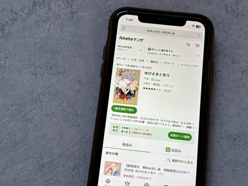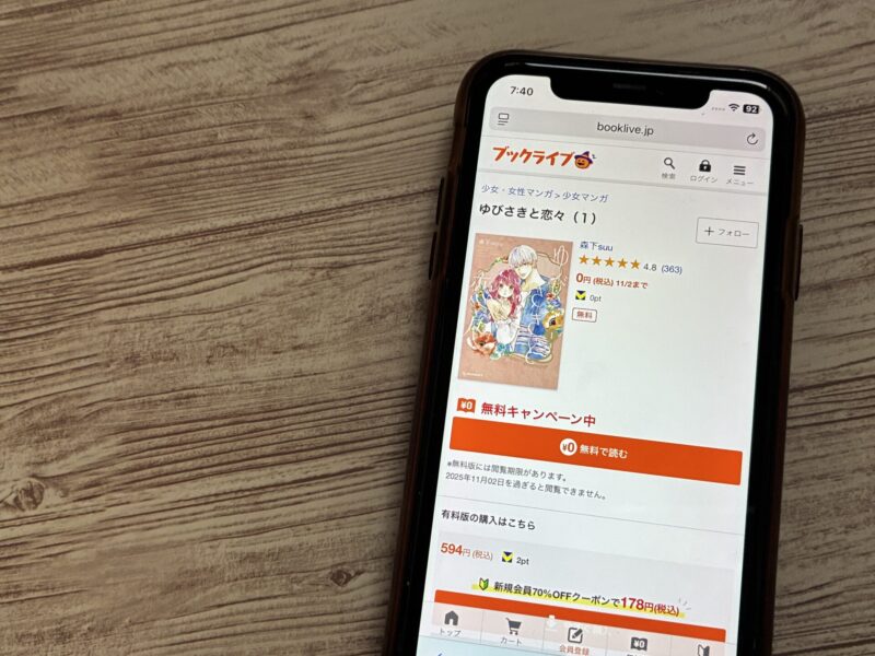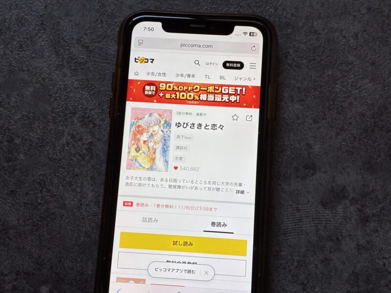 ゆびさきと恋々はまるごと無料では読めませんが、1巻が無料で読めるキャンペーンを実施中です(10/23まで)。