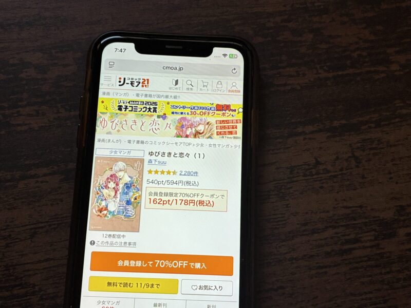 また、ブックライブは会員登録するだけで1冊限定の70%オフクーポンがもらえます