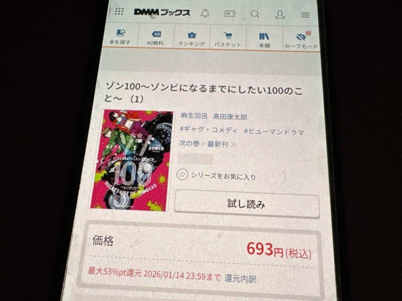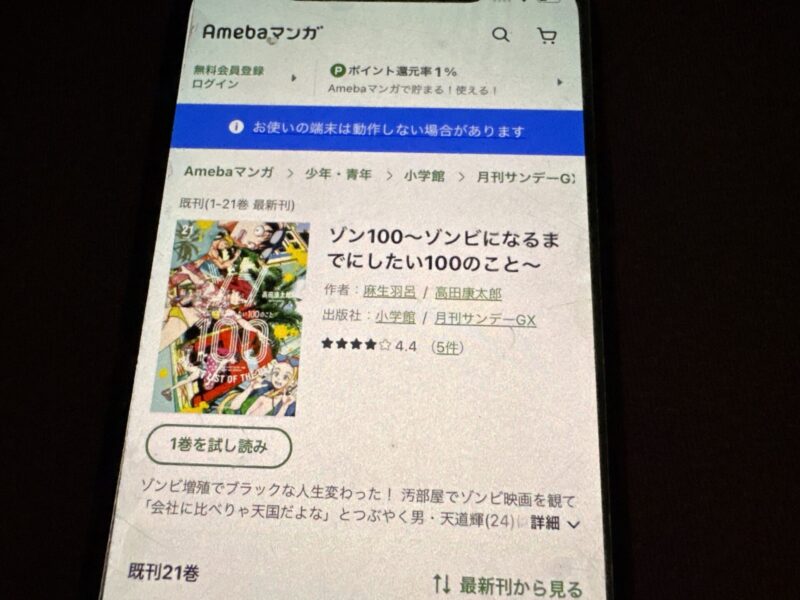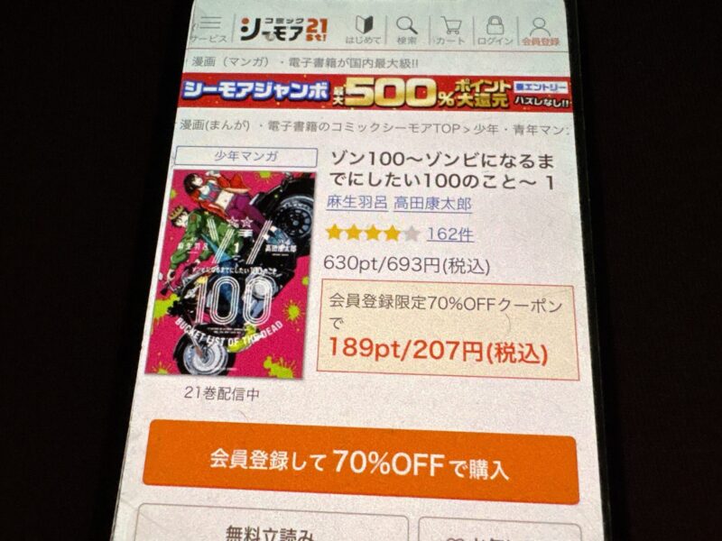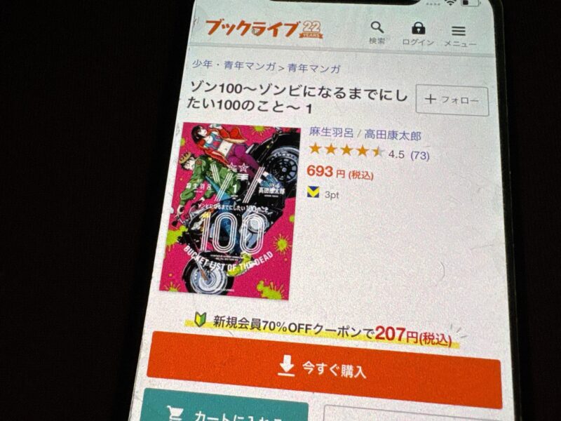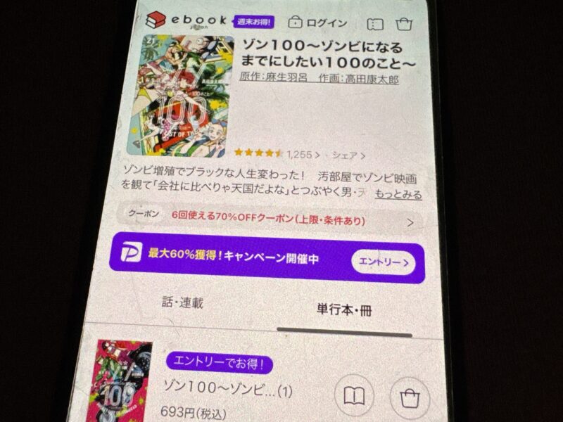 キャンペーンを利用すると、ゾン100~ゾンビになるまでにしたい100のこと~を割安にまとめて購入したり、1巻だけ無料で購入することが可能です。