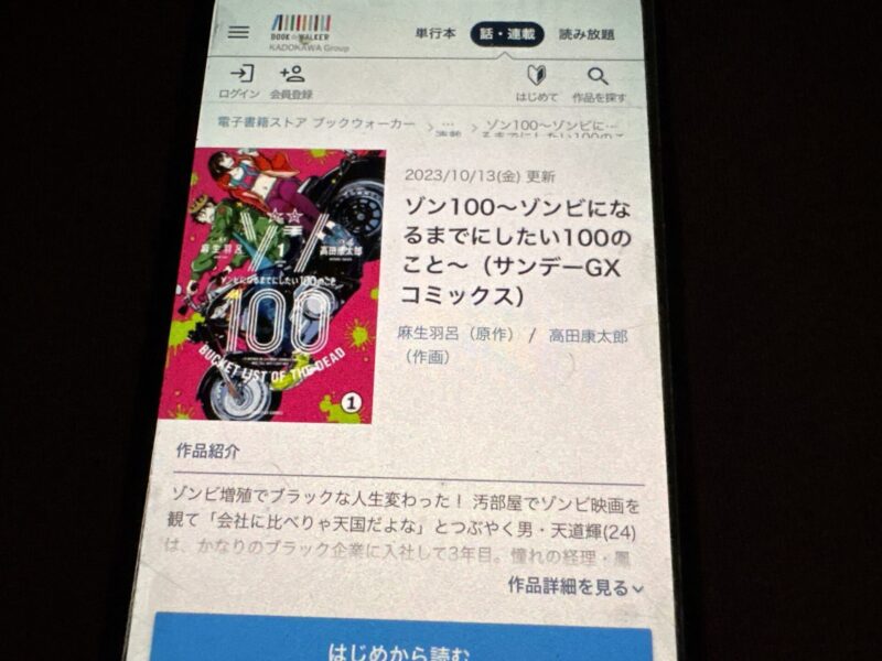 ゾン100~ゾンビになるまでにしたい100のこと~はまるごと無料では読めませんが、試し読みはできます。