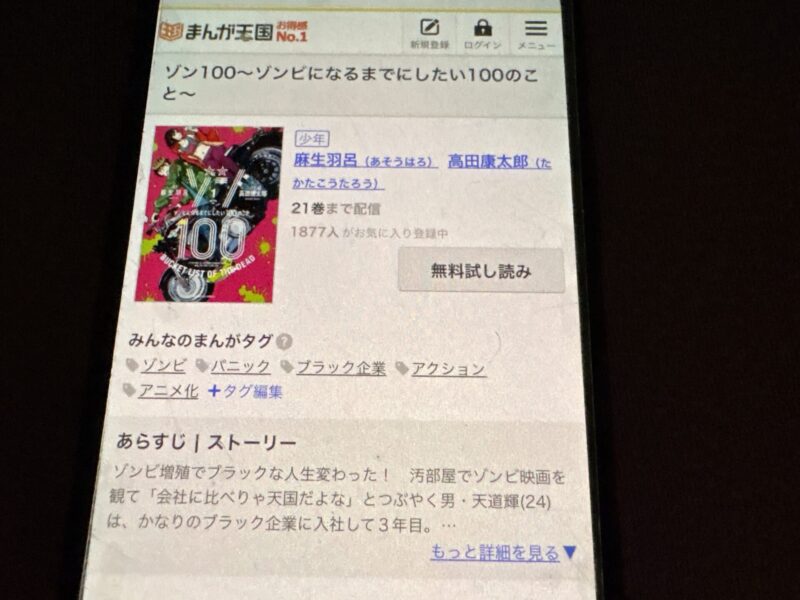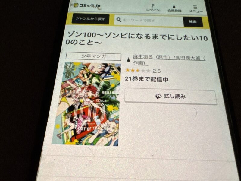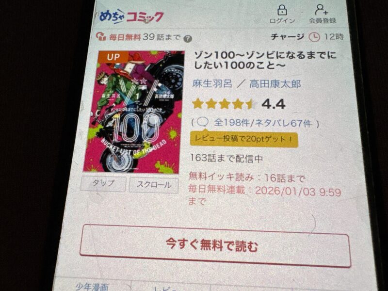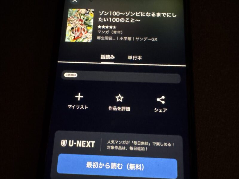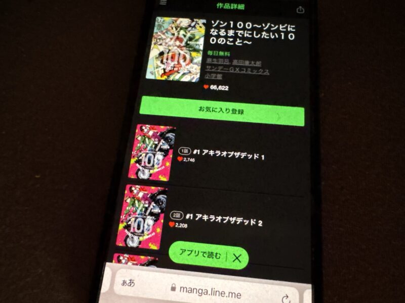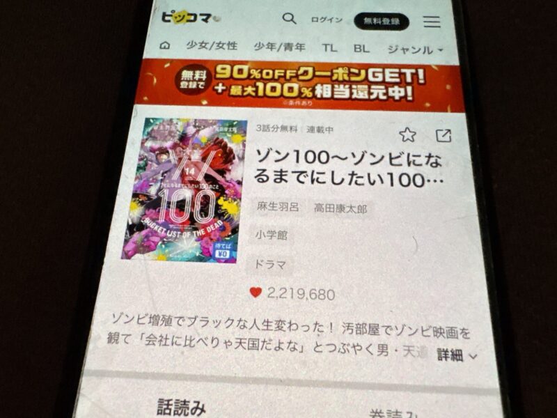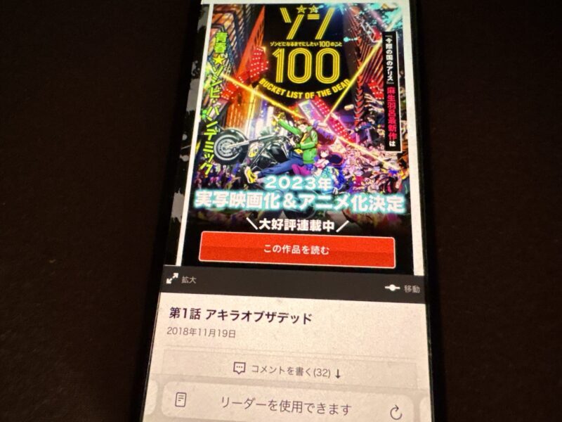 ここからは、ゾン100~ゾンビになるまでにしたい100のこと~の漫画が無料で読めるアプリを紹介します。